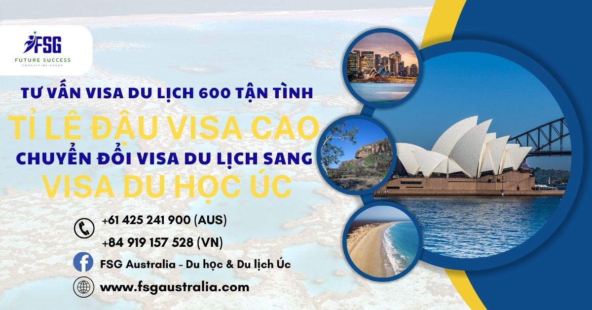 Nước Úc, với những bãi biển cát trắng trải dài, những thành phố hiện đại sôi động, và nền văn hóa đa dạng phong phú, luôn là điểm đến mơ ước của nhiều du khách trên thế giới. Để hiện thực hóa ước mơ khám phá xứ sở chuột túi, bước đầu tiên và quan trọng nhất chính là xin visa du lịch Úc (Visitor Visa - Subclass 600). Bài viết này FSG Australia sẽ cung cấp cho bạn mọi thông tin cần thiết về loại visa này, từ điều kiện, quy trình đến những lưu ý quan trọng khi xin visa.
